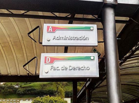 Entre los materiales utilizados están: lámina metálica (Cal.18), tubos de 2" y 3"(estructural y galvanizado), acrílico para exteriores de 2.4 mm, e impresión en vinilo (adhesivo y de corte).